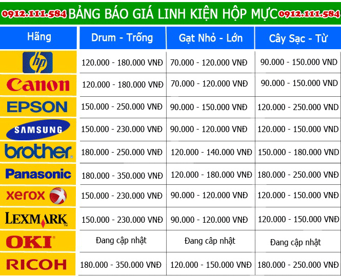 II. Bảng giá thay linh kiện máy in chính hãng, giá tốt tại Đà Nẵng.